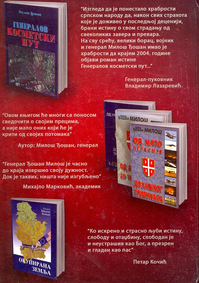 U ovoj knjizi, general Miloš Đošan govori o svim rizicima koji prete srpskom narodu, a njih je postrojio u ešalone, tvrdeći da je rafal iz svakog ešalona opasan, ali iz onog zadnjeg najopasniji.