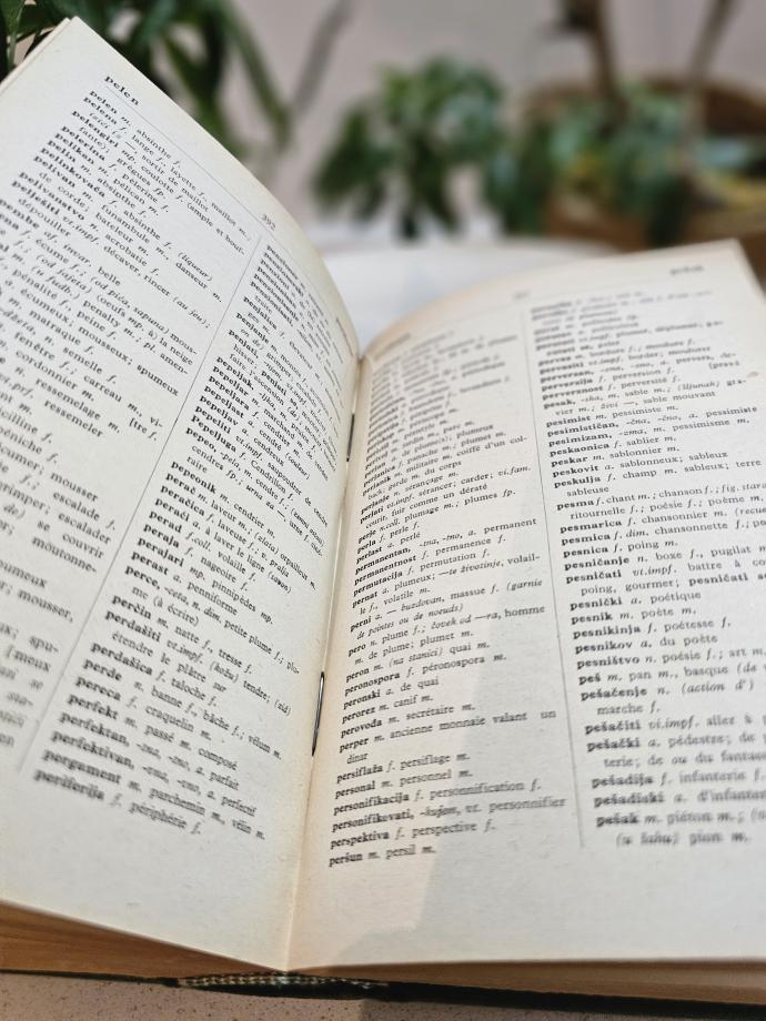 Učite iz rečnika sa istorijom “Rečnik srpskohrvatsko - francuski Aleksandar P. Perić”.