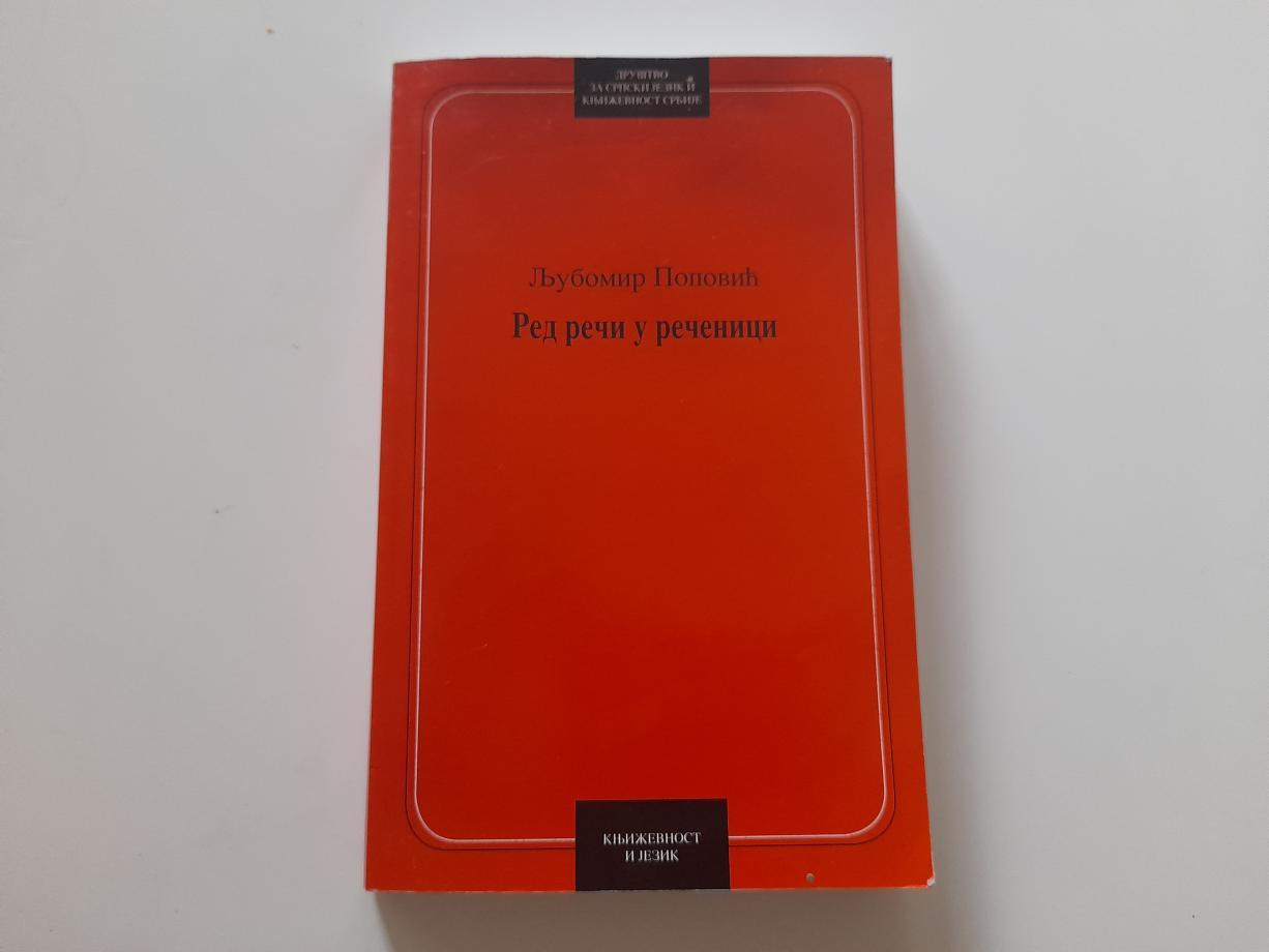 Knjiga Red reči u rečenici Ljubomira Popovića jedno je od temeljnih dela srpske lingvistike i stilistike. Autor, istaknuti profesor i proučavalac jezika, analizira kako raspored reči unutar rečenice utiče na značenje, ritam, stil i ekspresivnost govora i pisanja.