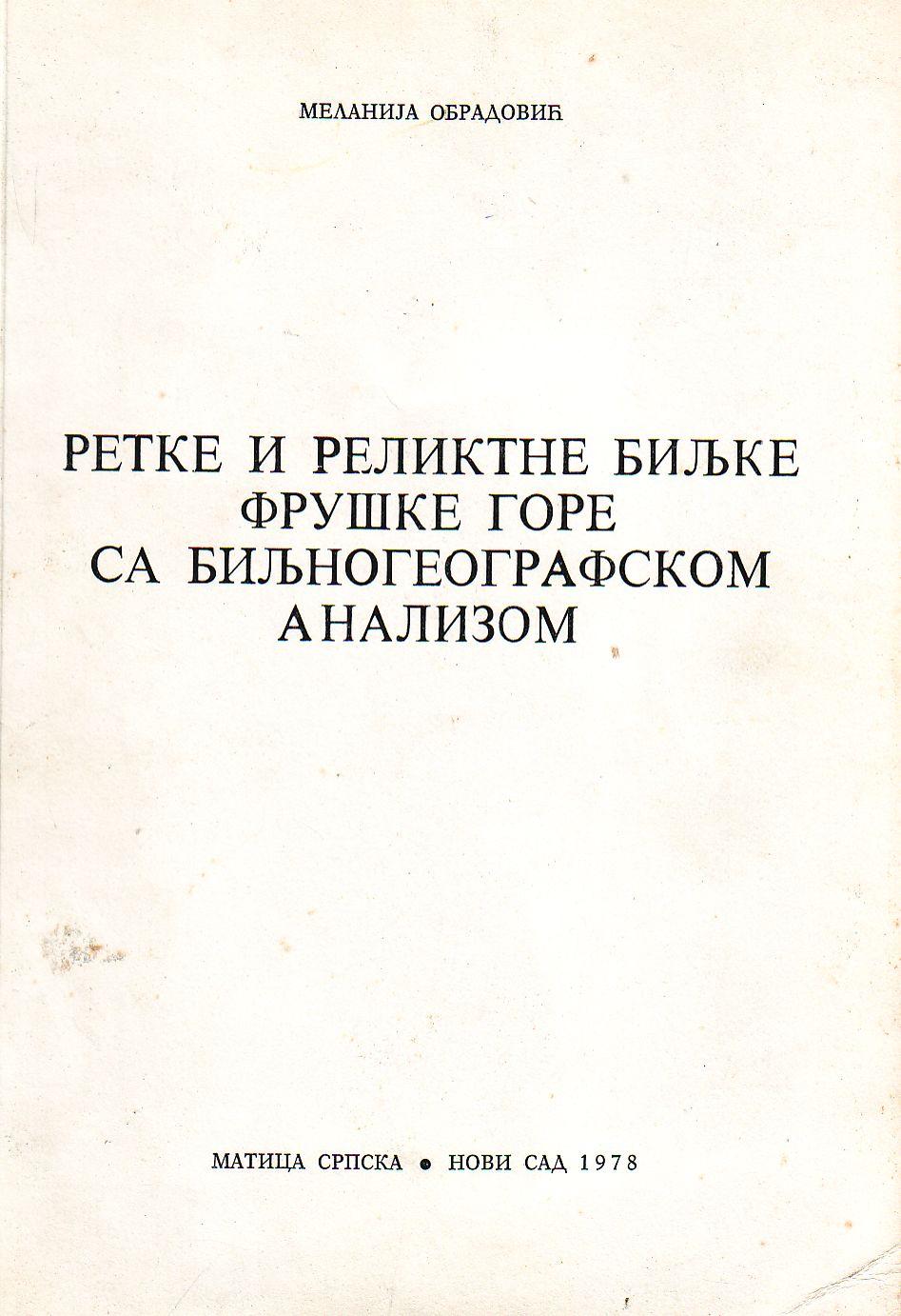 RETKE I RELIKTNE BILJKE FRUŠKE GORE