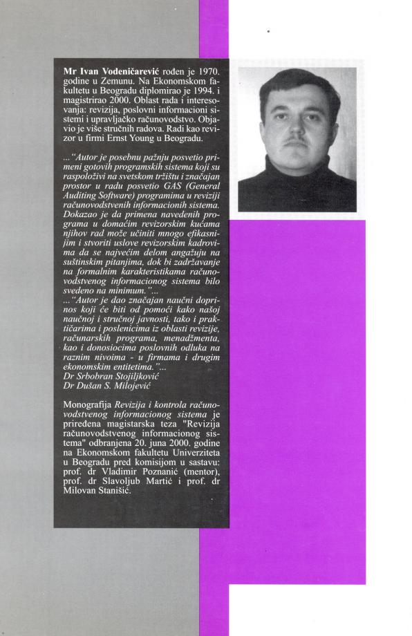 Autor razmatra postupke revizije računovodstvenog informacionog sistema zasnovanog na računarskoj tehnici i softveru, sisteme internih kontrola u ovom sistemu i postupke revizije finansijskih izveštaja u navedenim uslovima.