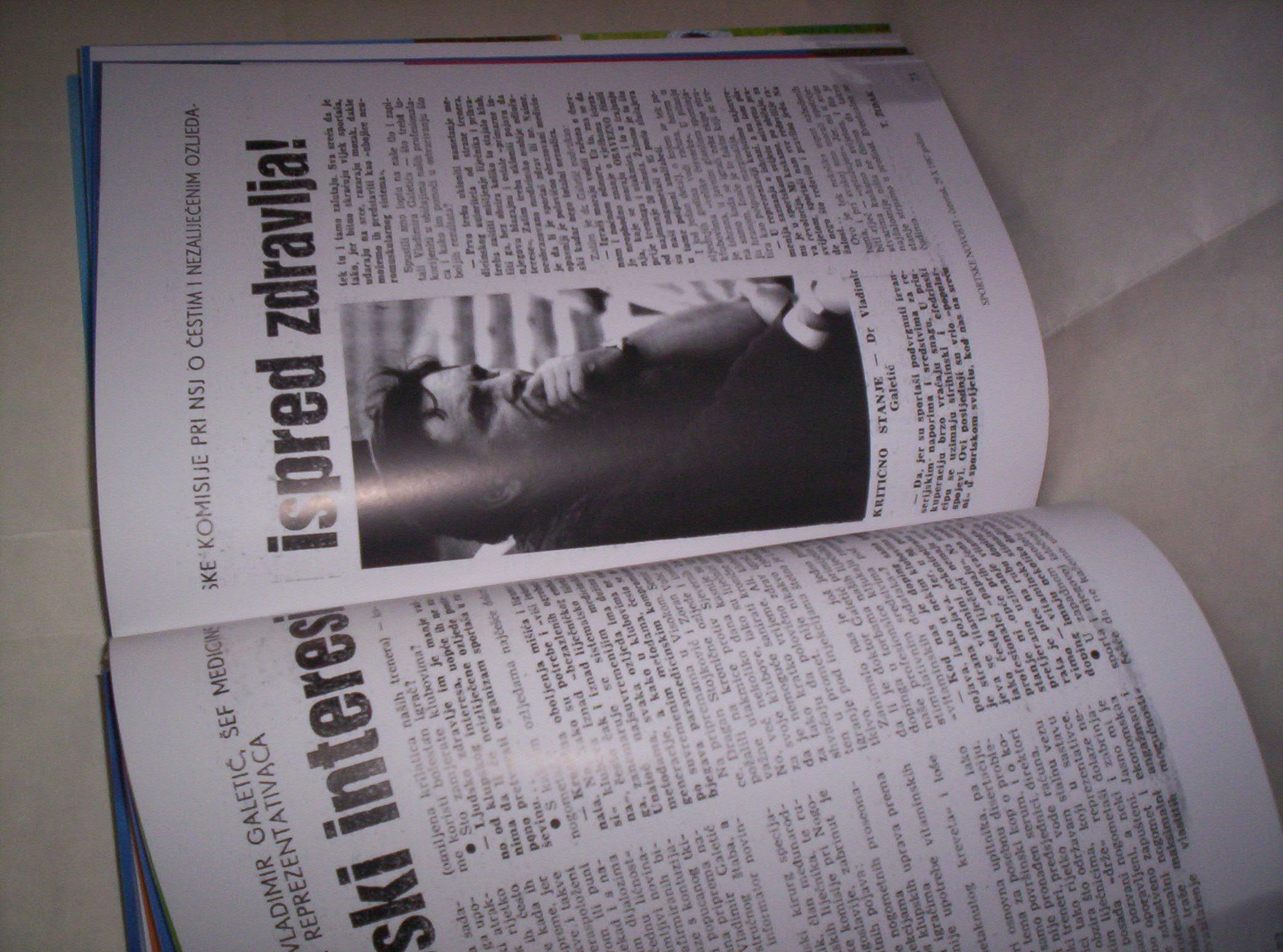 Dr Vladimir Galetić (priredio Borivoje Mirosavljević): S PLAVIMA DO KRAJA, Edicija „Zlatno oko“, knjiga 21, Foto, kino i video savez Vojvodine, Novi Sad, 2008, format 22 x 30 cm, strana 432, tvrde korice, kunstdruk, povez šivenjem, ilustrovano kolor i crno-belim fotografijama. ISBN 978-86-82717-50-8. Ilustrovana monografija o fudbalskoj reprezentaciji Jugoslavije od 1985. do 1992. godine za vreme dok je lekar bio dr Vladimir Galetić. Knjiga obiluje tabelama, sastavima timova, rezultatima, najboljim strelcima, utakmicama pojedinaca, nepublikovanim snimcima pojedinih fudbalera i reprezentacije, kao i novinskim izveštajima. Kapitalno izdanje za sve ljubitelje fudbala. Istorija fudbalske reprezentacije Jugoslavije od 1985. do 1992. godine. Novo i nekorišćeno. Knjiga ima posvetu. Šaljem po uplati. Ne korespondiram SMS porukama, ne prodajem knjige kupcima sa Kosova i ne šaljem u inostranstvo. Kupac plaća poštarinu.