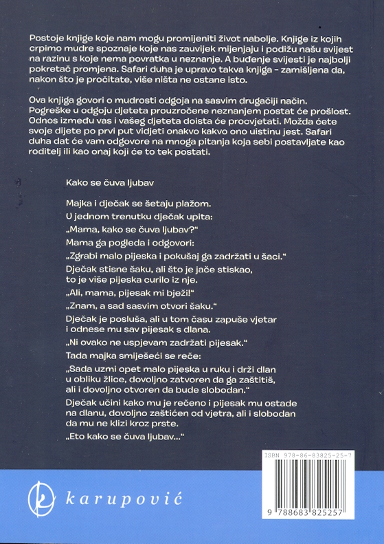 Safari duha upravo je takva knjiga – zamišljena da, nakon što je pročitate, više ništa ne bude isto. Ova knjiga govori o mudrosti odgoja na sasvim drugačiji način.