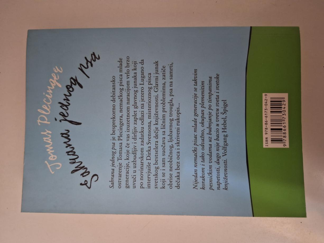 Sahrana jednog psa je besprekorno debitansko ostvarenje Tomasa Plecingera, nemačkog pisca mlađe generacije, koje će vas izuzetnom naracijom vrlo brzo uvući u uzbudljiv i dirljiv zaplet glavnog junaka koji po novinarskom zadatku odlazi na jezero Lugano da intervjuiše Dirka Svensona, misterioznog pisca svetskog bestselera dečje književnosti. Glavni junak koji se i sam suočava sa ličnim problemima, zatiče obrise neobičnog, ljubavnog trougla, psa na samrti, dečaka bez oca i skriveni rukopis...