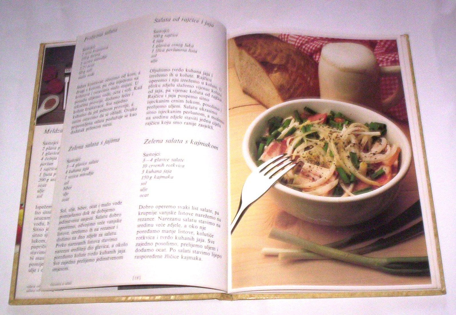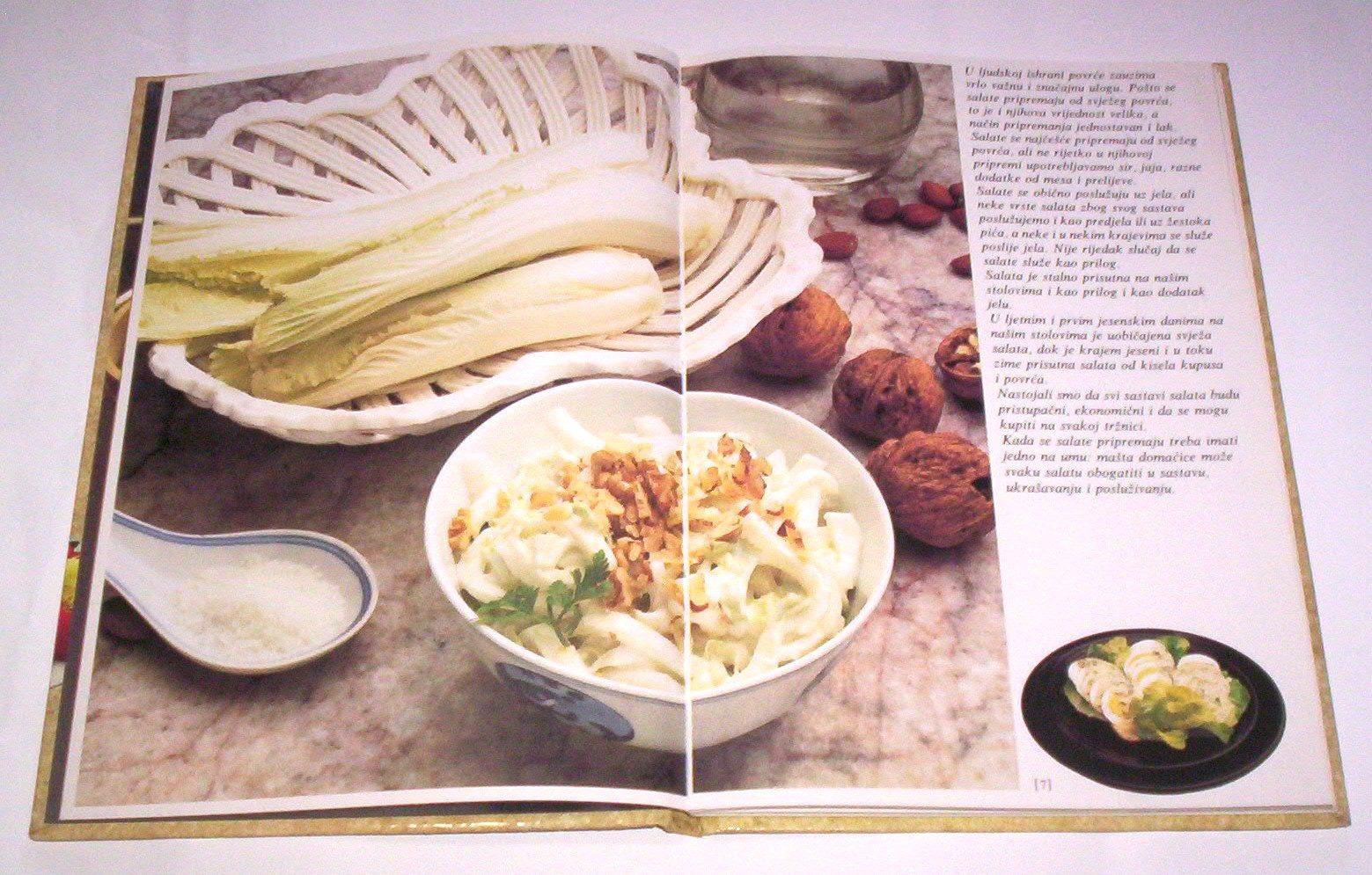 Grupa autora: SALATE, Jugoart, Zagreb, 1986, na hrvatskom, tvrde korice, format 17 x 24 cm, strana 59 numerisanih, ilustrovano fotografijama u punom koloru, ima ISBN 2-417-1001-5. Knjiga sadrži 58 recepata salata sa uputstvima kako ih pripremiti. Korišćen primerak, bez podvlačenja redova i čistih stranica. Ne korespondiram SMS porukama. Ne prodajem knjige kupcima sa Kosova i ne šaljem u inostranstvo. Cena je sa poštarinom. Šaljem samo kao preporučenu tiskovinu.