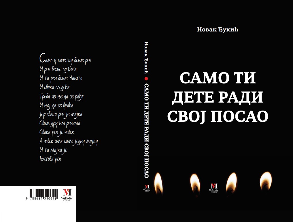Knjiga Samo ti dete radi svoj posao autora Novaka Đukića pruža jedinstven uvid u svakodnevni život i kulturu, istražujući način na koji ljudi međusobno komuniciraju i razmjenjuju iskustva. Đukić koristi svoje pesme kao sredstvo da starinski, ali živo komunicira sa svojim narodom, pri čemu razmatra različite oblike interakcija – od dovikivanja i rasprava do svađa. Ova interakcija među ljudima, koja je odavno ukorijenjena u kulturi, postaje centralna tema njegovog pisanja.