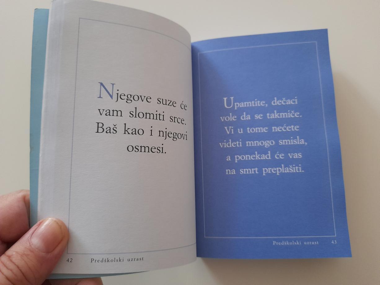 Ova zbirka mudrih izreka, napisana sa humorom i ljubavlju, predstavlja vodič na putu odrastanja, koji počinje od trenutka kada čujete čarobne reči: „Dobili ste sina“! Saveti u ovoj knjizi namenjeni su majkama koje svojim sinovima žele da prenesu moralne vrednosti i uliju samopouzdanje