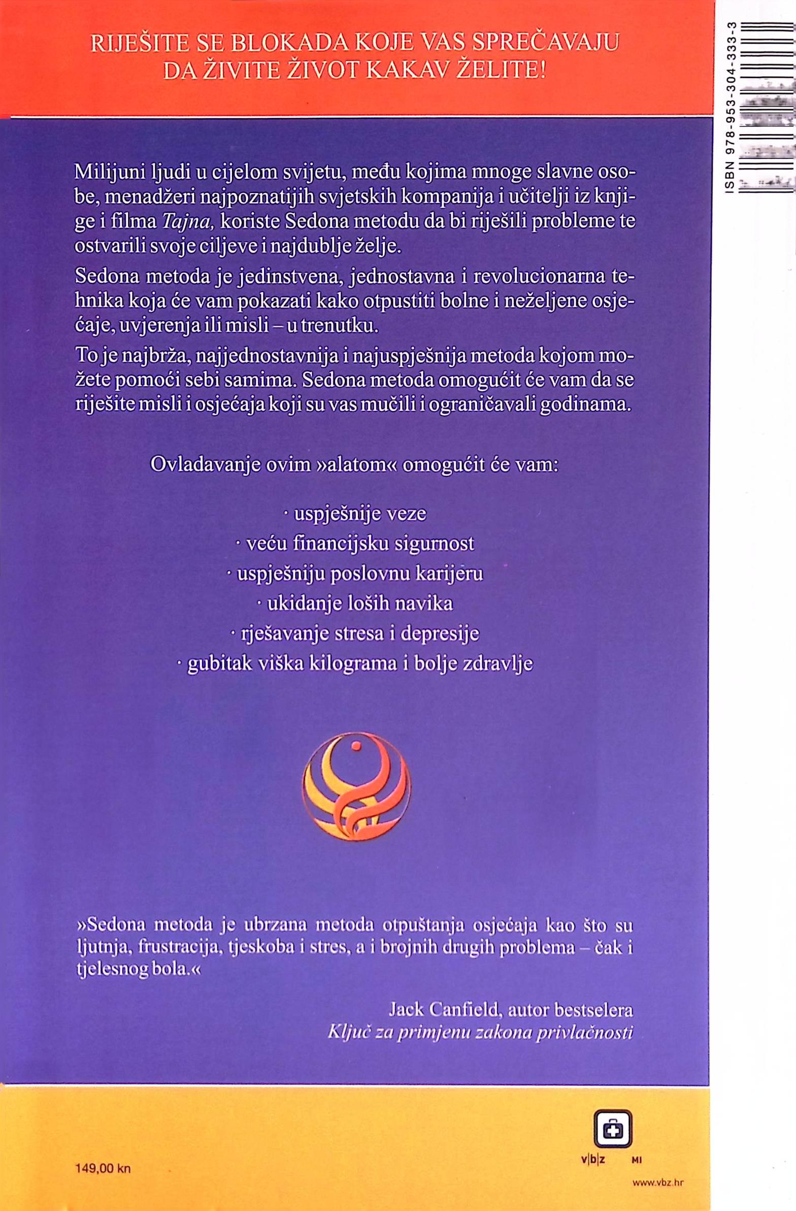 Već dvadeset godina od klijenata i prijatelja slušam prekrasne stvari o Sedona metodi. Nedavno sam se napokon i sam upisao na tečaj, zajedno sa suprugom i dvanaestogodišnjim sinom. Oduševila me jednostavnost te metode i njezin moćan utjecaj na moj život. Zahvaljujući radu na Pilećoj juhici za dušu i mojim seminarima samopoštovanja upoznat sam sa brojnim metodama i postupcima rada na sebi. Ova je, međutim, ispred svih zbog lakoće primjene, njezina dubokog utjecaja i brzine kojom poluči rezultate. Sedona metoda je veoma ubrzan sustav oslobađanja od osjećaja kao što su Ijutnja, frustracija, Ijubomora, tjeskoba, stres i strah, a i razrješavanja brojnih drugih problema pa čak i tjelesnog bola, s kojima se u ovoj ili onoj prilici suočava svatko.