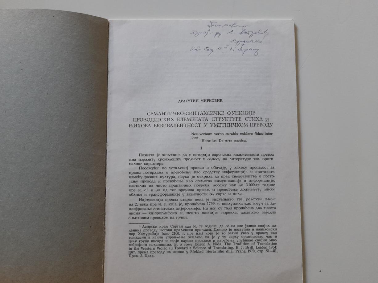 Semantičko-sintaksičke funkcije prozodijskih elemenatastrukture stiha i njihova ekvivalentnost u umetničkom prevodu.