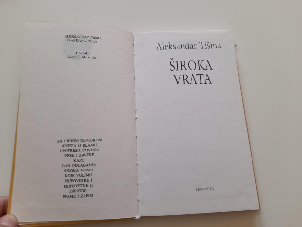 Može se, u prvi mah, neobičnom učiniti tvrdnja kako su Široka vrata najautobiografskiji od svih romana Aleksandra Tišme s obzirom na to da se sa njegovim junakom rastajemo kao sa vrlo mladim čovekom koji će, odlukom vojnog suda, biti streljan za nedelju dana. A Tišmu je tek očekivao dug život i, što je valjda još važnije, pisanje. Pažljiv čitalac Tišmine memoarske proze te romana Široka vrata lako će, u Tišminim opisima ljudi i događaja koje i jedna i druga proza obuhvataju, pronaći brojne sličnosti između doživljaja pisca i doživljaja romanesknog junaka, kako u zbivanjima tako i u nekim likovima. On se na više mesta, posebno u svojoj putopisnoj prozi, poigrava sa pretpostavkom šta bi bilo da je bilo, tačnije da je u nekom životnom trenutku doneo nekakve druge i drukčije odluke. Roman Široka vrata krije još jedan paradoks: to je mladalački roman starog pisca. Tišma ga je započeo rano, ali nikada nije bivao zadovoljan onim što je napisao. Okončao ga je tek pri kraju života i stvaranja. Možda u času kada se o onome mogućem a neostvarenom, što je moglo biti a nije, sa razlogom više razmišlja. Ali i sa surovom neminovnošću: ranije smo uspešno izbegavali smrt ali nas ona ipak, na kraju, pouzdano sačeka.