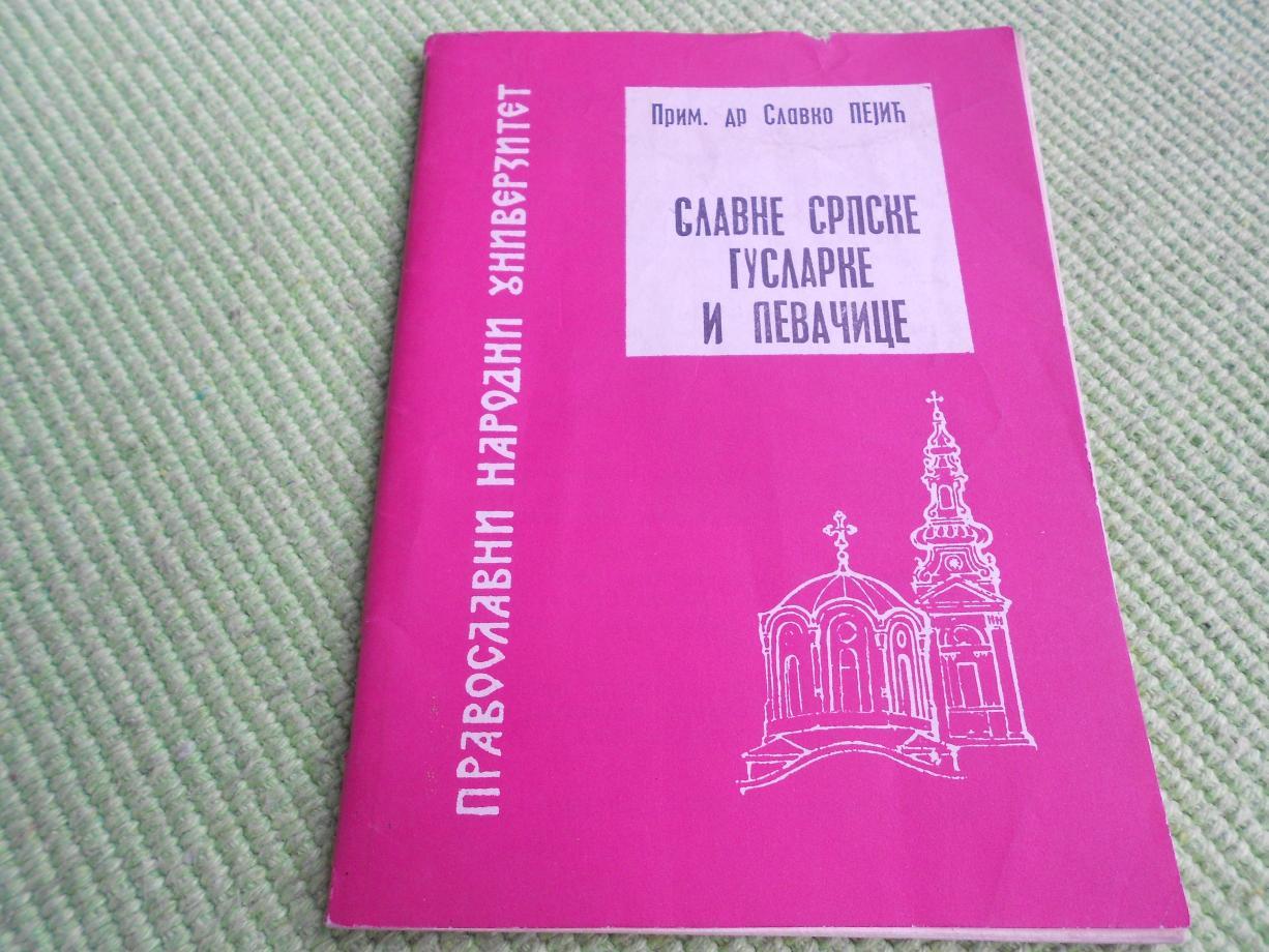 Prodajem knjigu Prim. Dr Slavka Pejića "Slavne srpske guslarke i pevačice". Pravoslavni narodni univerzitetu Beogradu 1971. godine. Knjiga je nova.