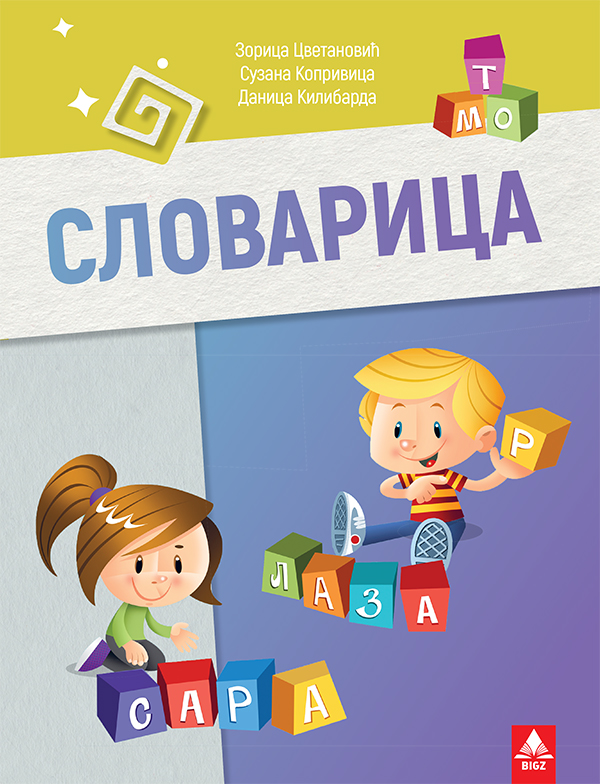 Bigzova slovarica sa folijom za slova iz srpskog za prvi razred osnovne škole.