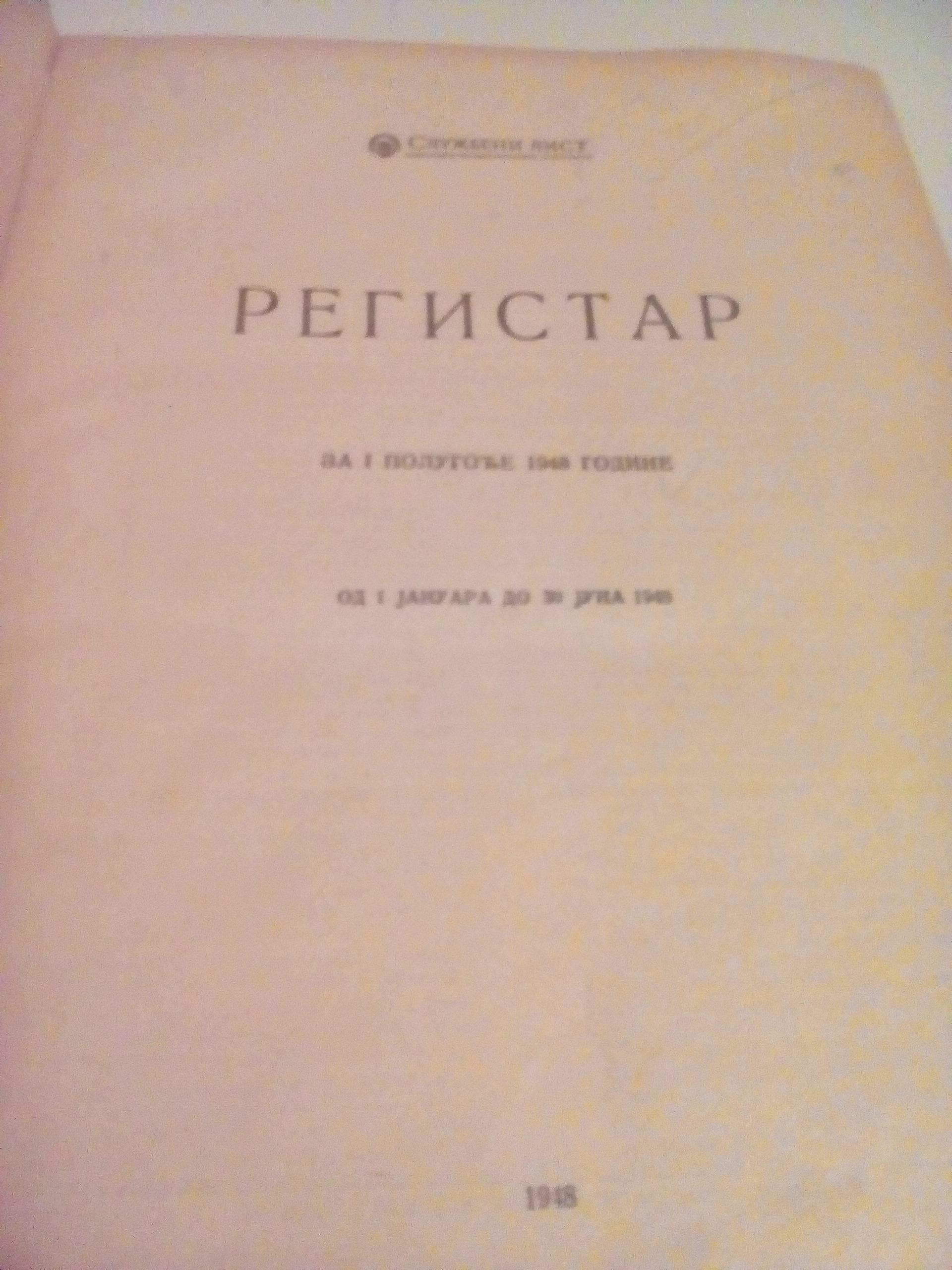 SLUZBENI LIST ZA PRVO POLUGODJE 1948 GODINE