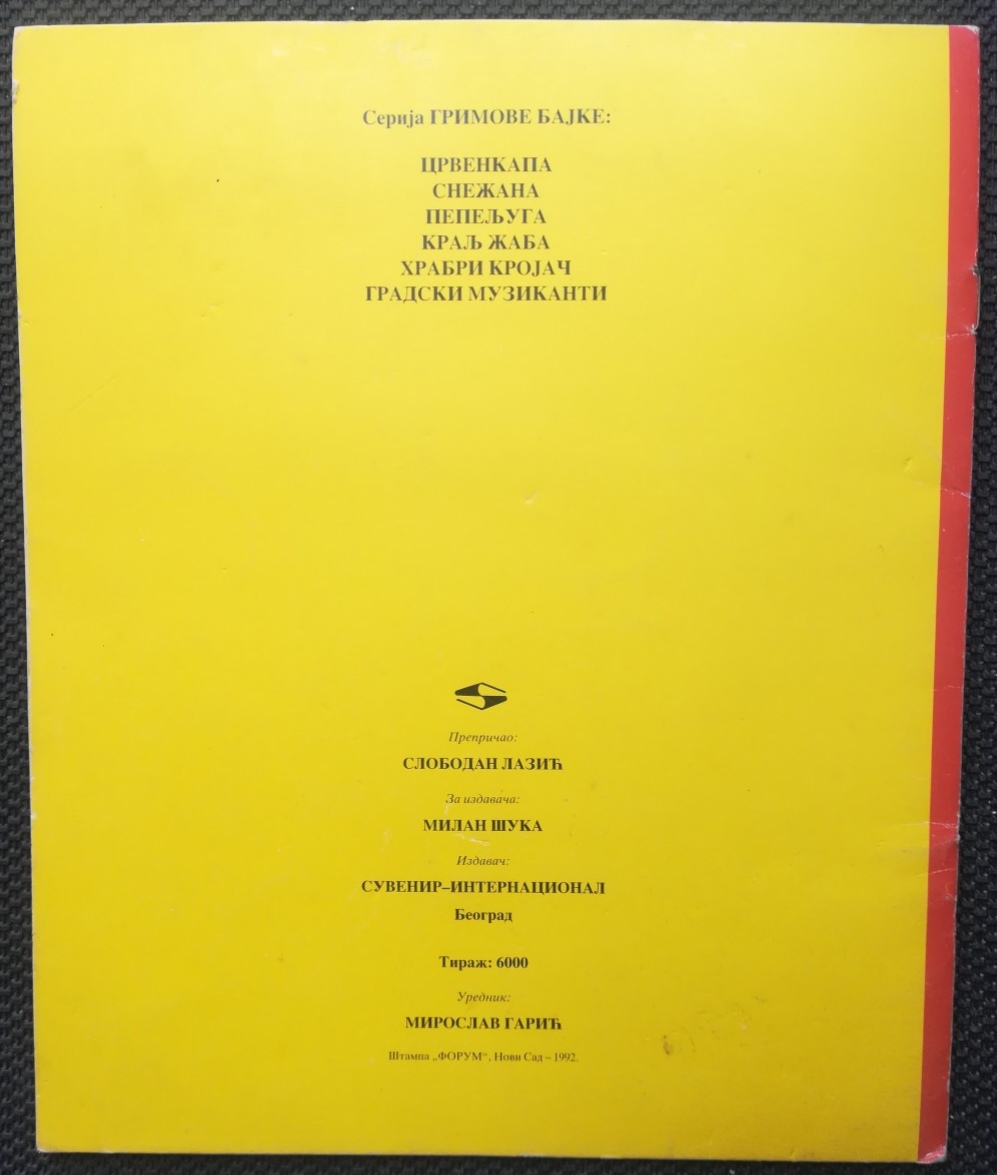 SUVENIR INTERNACIONAL Beograd 1992. Serija GRIMOVE BAJKE.