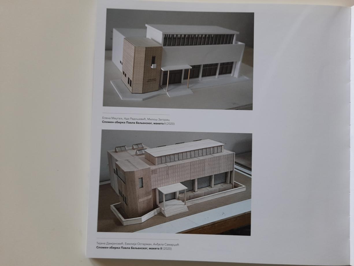 Na izložbi su prikazane vredne fotografije i arhivski materijal iz Spomen-zbirke Pavla Beljanskog, Narodne biblioteke Srbije, Muzeja hvarske baštine, brojnih privatnih zbirki, kao i novinske članke koji će dočarati raspoloženje javnosti iz vremena otvaranja Spomen-zbirke i podsetiti na značaj koji je sam događaj imao za tadašnji kulturni život grada i države. U posebnom segmentu je izložena likovna ostvarenja arhitekte iz zaostavštine porodice, kao i dve makete zgrade koje su uradili studenti Departmana za arhitekturu i urbanizam Fakulteta tehničkih nauka u Novom Sadu pod mentorstvom svojih profesora.