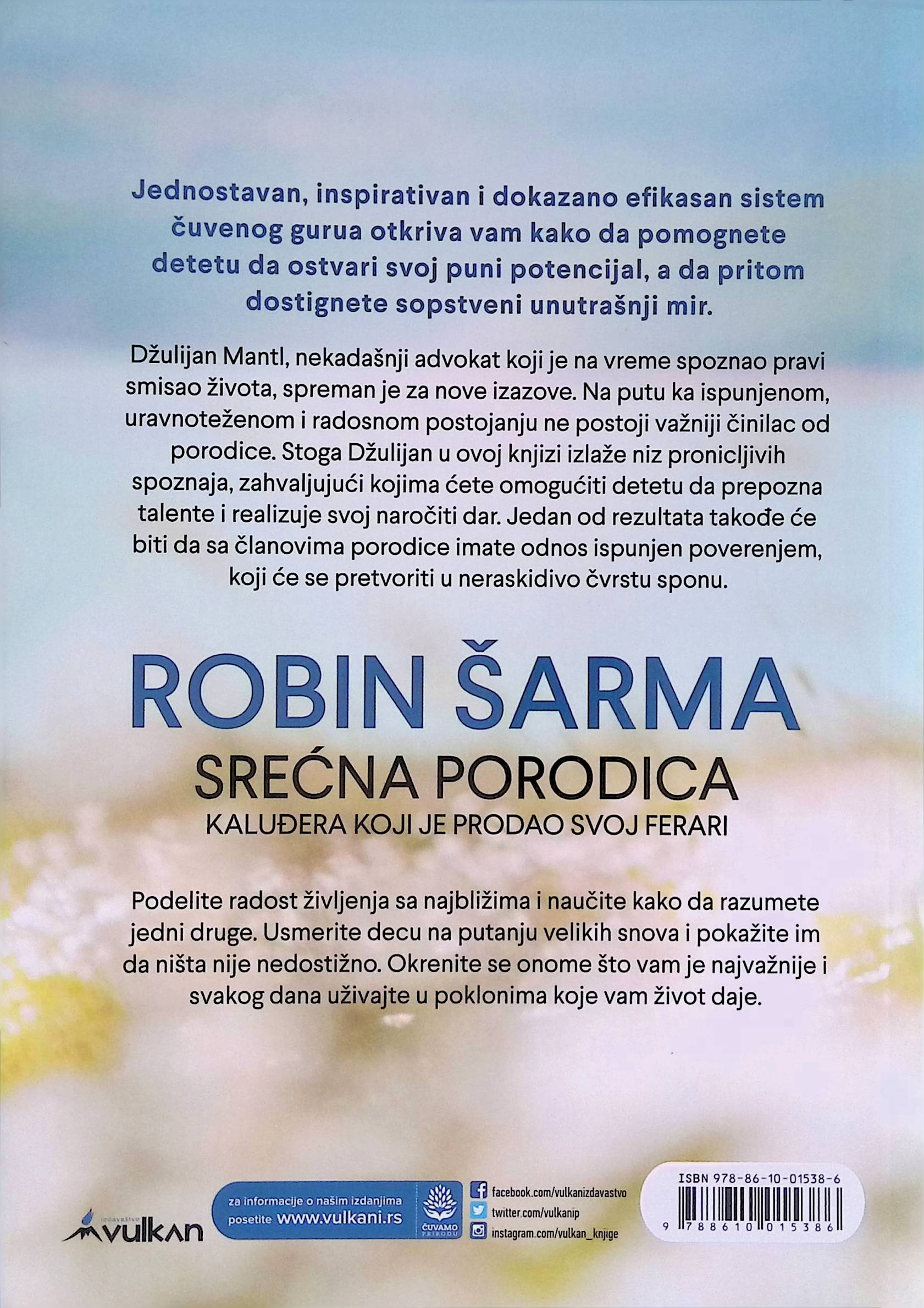 Džulijan Mantl, nekadašnji advokat koji je na vreme spoznao pravi smisao života, spreman je za nove izazove. Ovoga puta se ti izazovi odnose na porodicu, a porodica je ono najvažnije. Zbog toga Džulijan u ovoj knjizi izlaže niz pronicljivih spoznaja, zahvaljujući kojima ćete omogućiti detetu da prepozna talente i realizuje svoj naročiti dar. Jedan od rezultata takođe će biti da sa članovima porodice imate odnos ispunjen poverenjem, koji će se pretvoriti u neraskidivo čvrstu sponu.