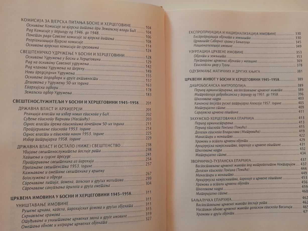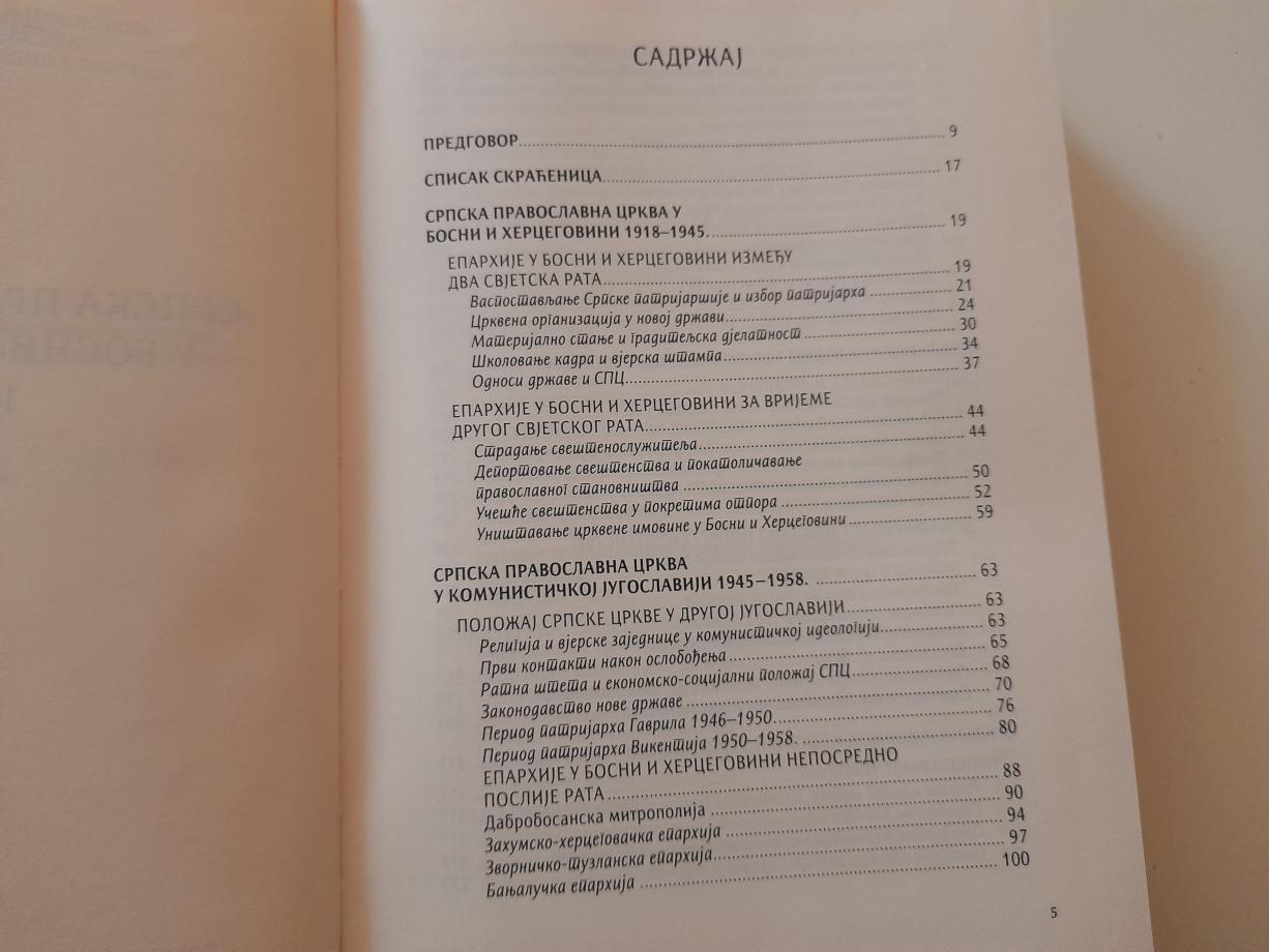 Истраживање Српске православне цркве послије Другог свјетског рата започео сам прије десет година, приликом прикупљања грађе за магистарски рад под називом Бањалучка епархија за вријеме епсикопа Василија (Костића), 1947 - 1961. Будући да сам у поменутом раду обрађивао једну епархију, сматрао сам да је логично и оправдано у докторској тези посветити пажњу и осталим епархијама у Босни и Херцеговини, али и црквеним јединицама које су биле у саставу епархије ван ове републике. Због тога сам докторски рад насловио Српска православна црква у Босни и Херцеговини 1945 - 1958…