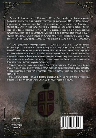 Srpsku trilogiju čine Devetstočetrnaesta, Pod krstom i Kapija slobode, predstavlju svojevrsnu romansiranu istoriju I svetskog rata.