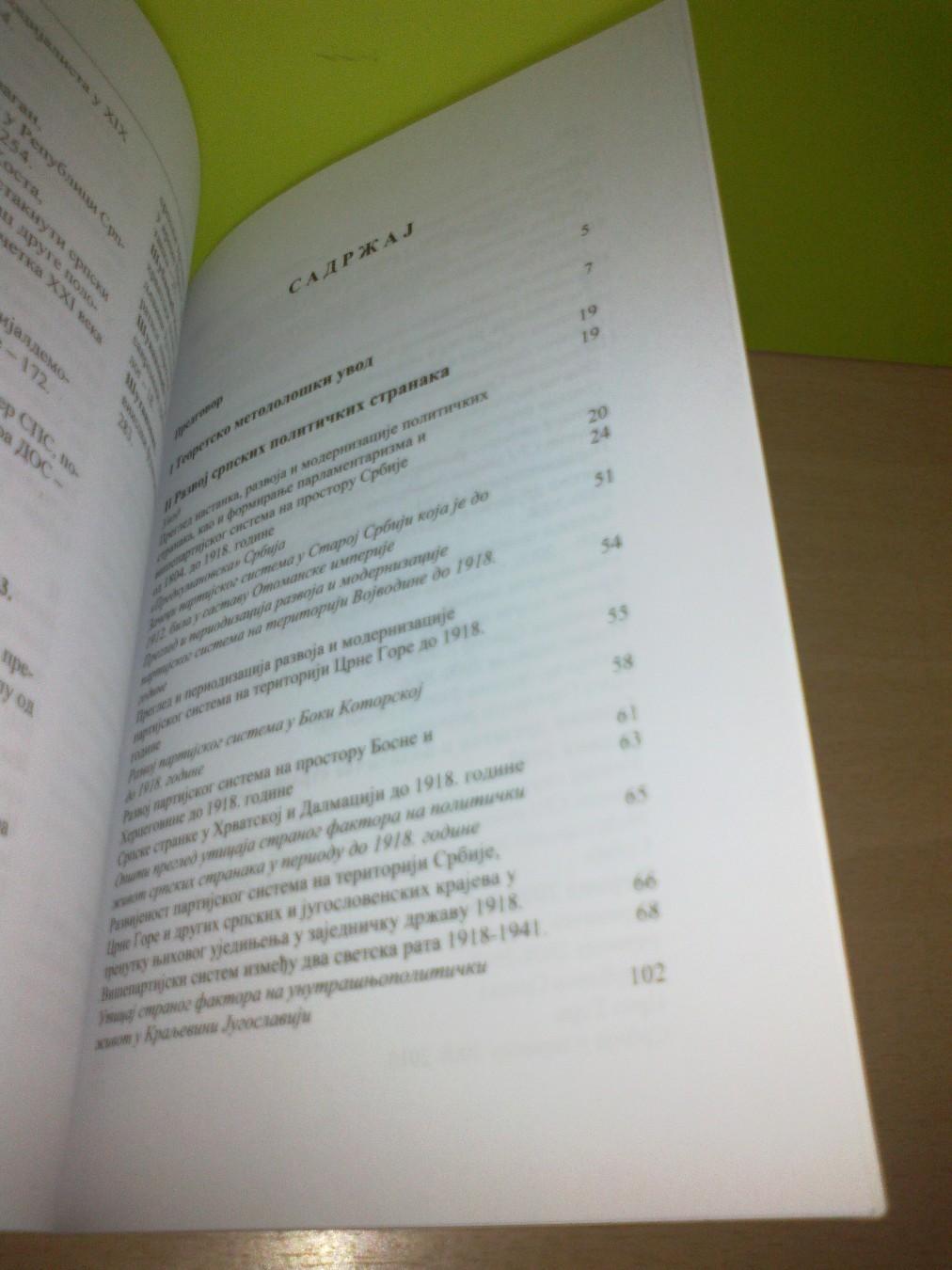 Razvoj srpskih političkih stranaka: Od 1804 - 1918, Na teritoriji Crne Gore do 1918, Na prostoru BIH do 1918, U Hrvatskoj i Dalmaciji do 1918, Višepartijski sistem između dva svetska rata 1918-1941, U SFRJ do 1990, Parlamentarizam...