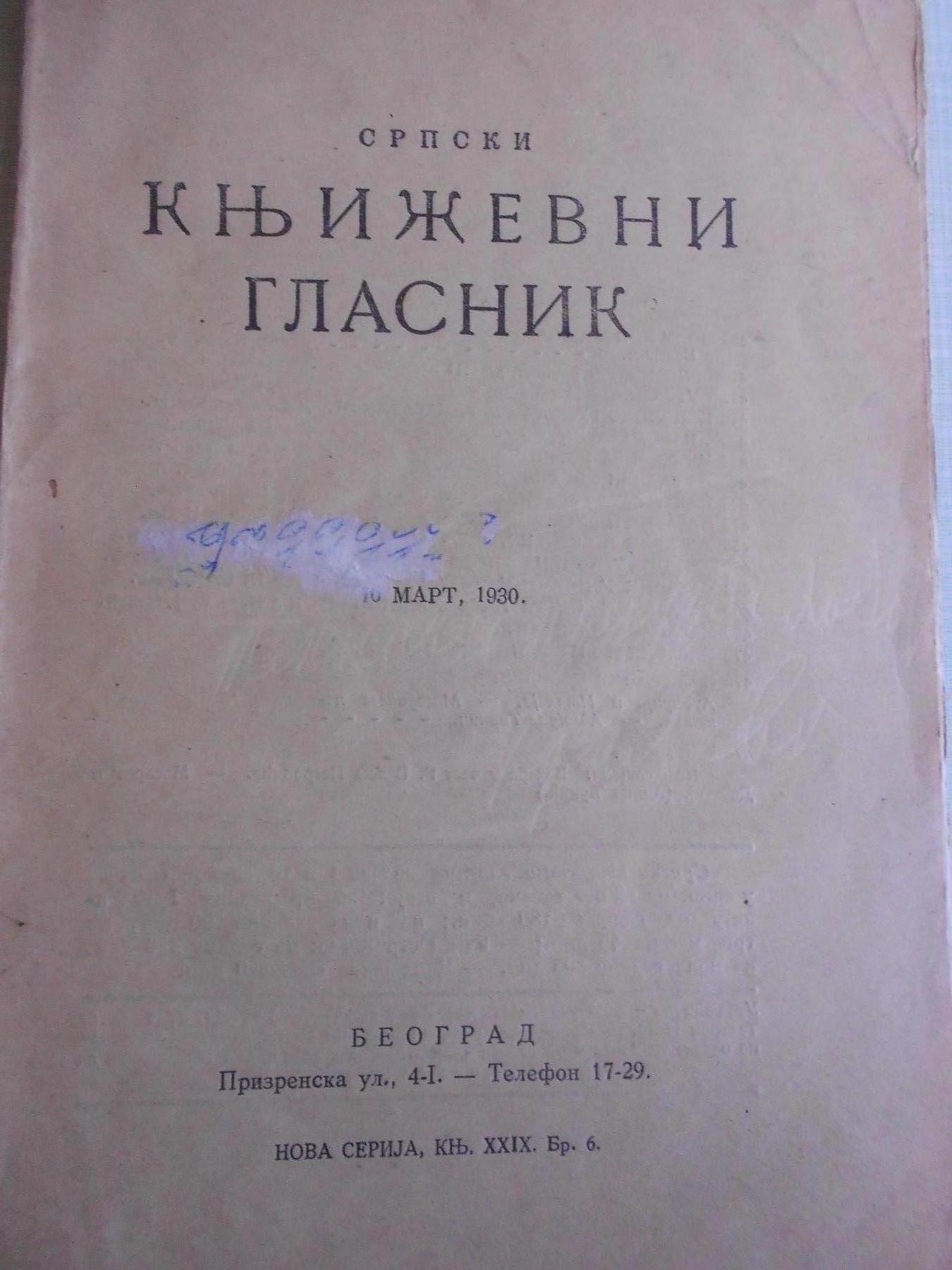 Prodajem Srpski književni glasnik od 16. marta 1932. godine. Izvrsno očuvan!