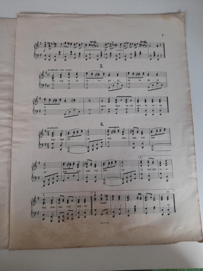 Polovan notni zapis, u donjem delu zahvaćen vlagom, ostalo odlično očuvano.