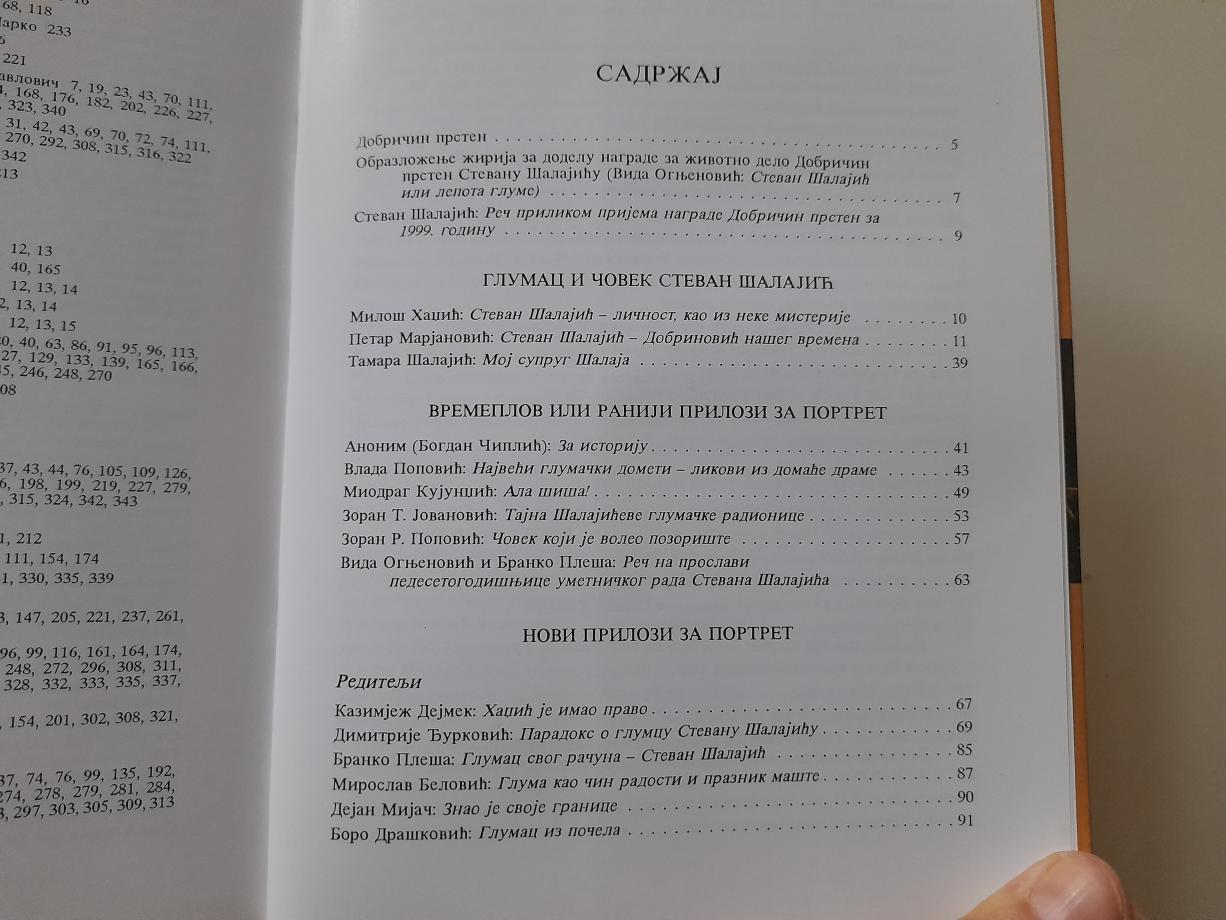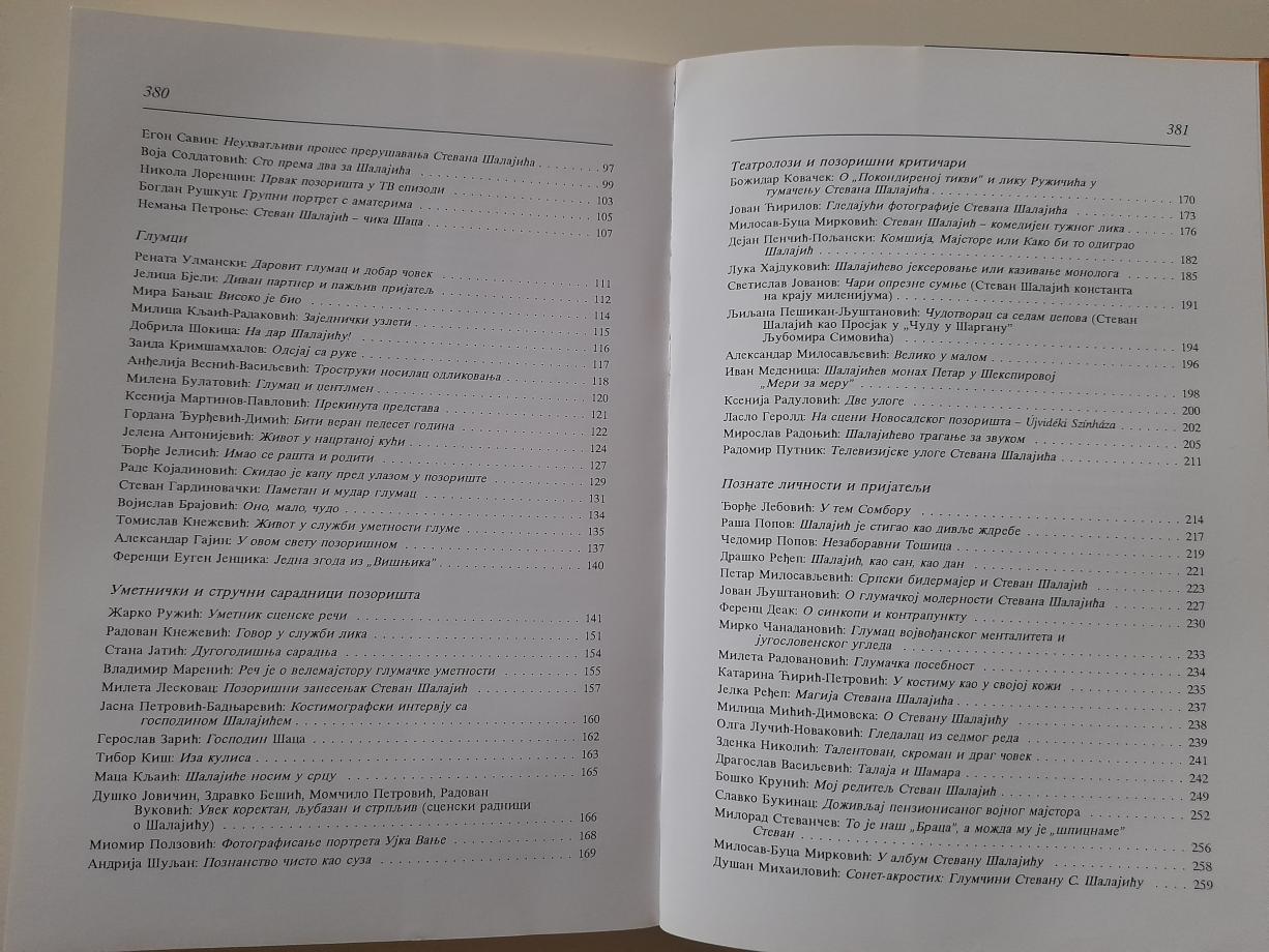Glumac iz Vojvodine, Stevan Šalajić, obeležio je repertoar Srpskog narodnog pozorišta u Novom Sadu i za svoju `umetnost` 1999. godine dobio nagradu za životno delo Saveza dramskih umetnika Srbije `Dobričin prsten`, `rušeći` tako četrnaestogodišnju tradiciju da ovo esnafsko priznanje dobijaju glumci iz Beograda. Monografija sastavljena od teatroloških analiza, sećanja i životnih priča o Stevanu Šalajiću ugledala je `svetlost dana` i predstavljena je u Muzeju pozorišne umetnosti. Tako između korica ove obimne studije, koja treba da sačuva jednu glumačku karijeru od zaborava, nailazimo na tekstove Miloša Hadžića, nekadašnjeg upravnika SNP-a, Tamare, supruge Stevana Šalajića, koja piše o tome kako je biti životna saputnica čoveka čiji je posao zahtevao konstantnu `transformaciju`, scenografa Geroslava Zarića, koji se seća kako je bilo raditi sa ovim glumcem u kreiranju scene za predstavu `Putujuće pozorište Šopalović` Ljubomira Simovića, ali i tehničkog direktora, majstora scene i portira SNP-a.