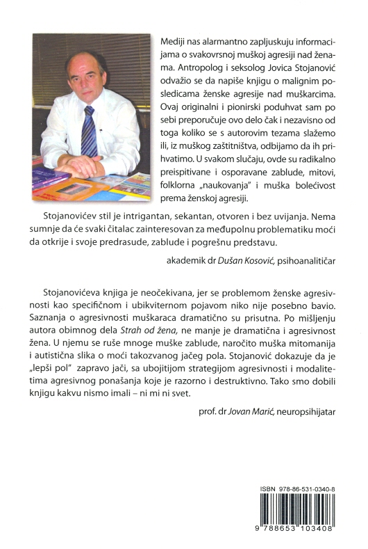 Mediji nas alarmantno zapljuskuju informacijama o svakovrsnoj muškoj agresiji nad ženama. Antropolog i seksolog Jovica Stojanović odvažio se da napiše knjigu o malignim posledicama ženske agresije nad muškarcima. Ovaj originalan i pionirski poduhvat sam po sebi preporučuje ovo delo čak i nezavisno od toga koliko se s autorovim tezama slažemo ili, iz muškog zaštitništva, odbijamo da ih prihvatimo. U svakom slučaju, ovde su radikalno preispitivane i osporavane zablude, mitovi, folklorna „naukovanja” i muška bolećivost prema ženskoj agresiji. Stojanovićev stil je intrigantan, sekantan, otvoren i bez uvijanja. Nema sumnje da će svaki čitalac zainteresovan za međupolnu problematiku moći da otkrije i svoje predrasude, zablude i pogrešnu predstavu.