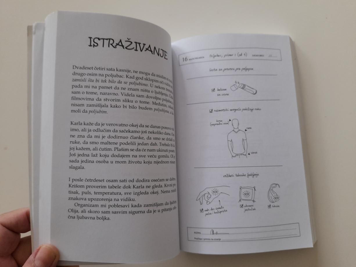 Međutim, jednoga dana se pred komšijskom kućom pojavi kamion za selidbe. Kad bacim pogled kroz prozor, ugledam njega. Visok je, vitak i sav u crnom – crna majica, crne farmerke, crne patike i crna kapa koja mu potpuno pokriva kosu. Uhvati me kako virim i uzvrati pogled. Gledamo se netremice. Zove se Oli. Možda i ne možemo da predvidimo budućnost, ali ponešto ipak možemo. Na primer, ja ću se sasvim sigurno zaljubiti u njega. I to sasvim sigurno neće izaći na dobro.