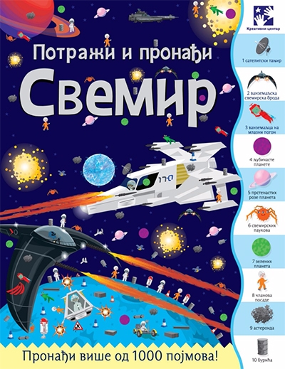 Zabavna knjiga o univerzumu sa preko hiljadu pojmova za pronalaženje koji su sakriveni na njenim stranicama.