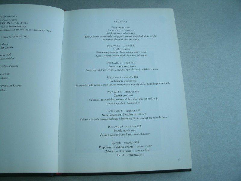 Takođe, Hoking nam omogućava da zavirimo iza pozornice jedne od najuzbudljivijih intelektualnih pustolovina - nastojanja „da se povežu Ajnštajnova opšta teorija relativnosti i zamisli Ričarda Fejnmena o višestrukim istorijama u celovitu objedinjenu teoriju koja bi opisala sve što se događa u kosmosu“.Uz osoben zanos, profesor Hoking poziva nas da mu se pridružimo na ovom izuzetnom putovanju kroz prostorvreme. Obilje ilustracija u boji pomaže da se predeli kojima se krećemo predoče kao nadrealna zemlja čuda u kojoj se čestice, listovi i strune kreću kroz jedanaest dimenzija; gde crne rupe isparavaju i iščezavaju, odnoseći sa sobom svoje tajne; i gde je prvobitno kosmičko seme iz koga je iznikao naš kosmos bilo tek majušni orah.