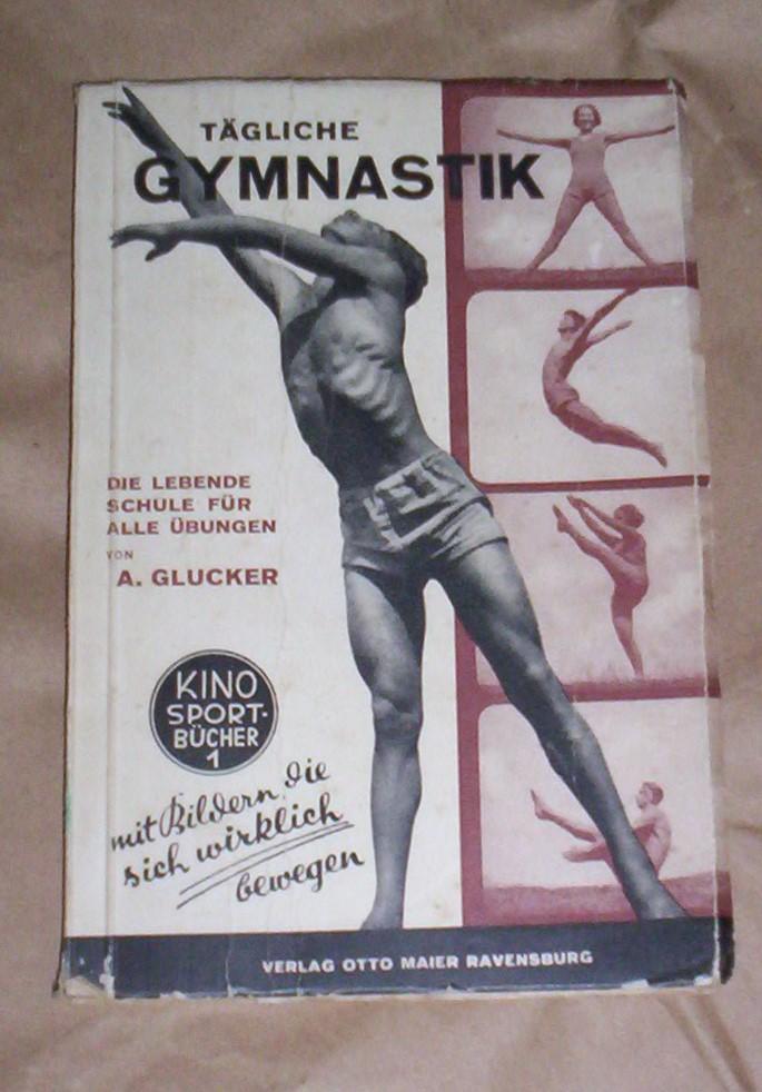 A.Glücker: TÄGLICHE GYMNASTIK, Kino-Sport-Bücher, Band 1, Otto Maier Verlag, Ravensburg, 1940, na nemačkom jeziku, broširan povez, format 12 x 18 cm, 30 strana, ilustrovano sa 187 fotografija, džepno izdanje. Korišćen primerak, korice malo iskrzane na krajevima, stranice čiste i bez podvlačenja redova. Ova knjižica je deo nemačke nacional-socijalističke propagande i namenjena je školama i svim gimnastičarima za svakodnevno vežbanje gimnastičkih vežbi, kako bi bili jaki i snažni kao nemački hrtovi. Ne korespondiram SMS porukama, ne prodajem knjige kupcima sa Kosova i ne šaljem u inostranstvo. Kupac plaća poštarinu.