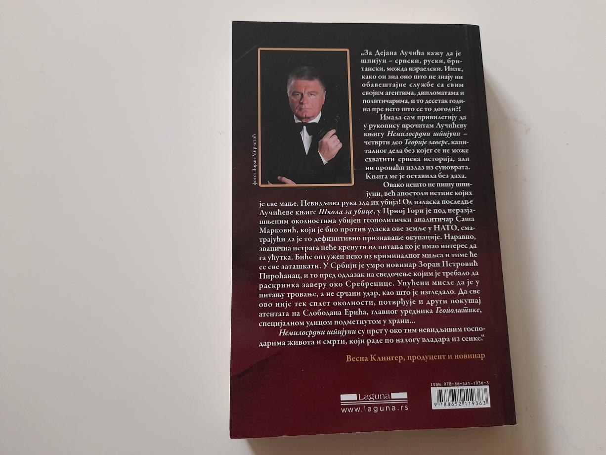 Imala sam privilegiju da u rukopisu pročitam Lučićevu knjigu Nemilosrdni špijuni - četvrti deo Teorije zavere, kapitalnog dela bez kojeg se ne može shvatiti srpska istorija, ali ni pronaći izlaz iz sunovrata. Knjiga me je ostavila bez daha.