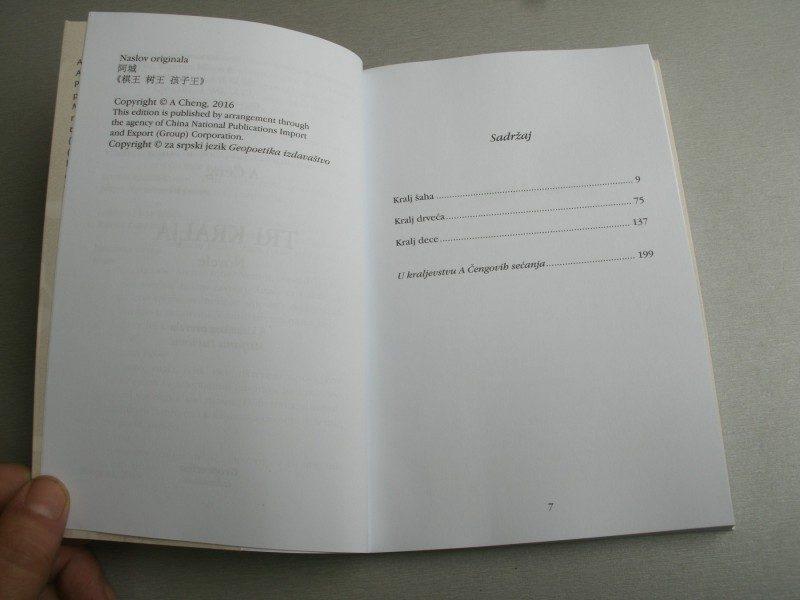 Iskustva koja je stekao živeći u zabačenim krajevima Kine kao učesnik Maovog društvenog eksperimenta slanja omladine iz gradskih sredina u ruralne krajeve, poslužila su A Čengu kao tematska okosnica književne trilogije o tri `kralja`. On zadire u tri važna aspekta kineske tradicionalne kulture (potreba za duhovnim razvojem, značaj obrazovanja i harmonija između prirode i čoveka), a ove tri novele povezuje gotovo potpuno odsustvo opisa zlostavljanja za vreme Kulturne revolucije, svojstvenih mnogim proznim delima postmaoističke književnosti. Bilo da je reč o gladi, sveopštoj nemaštini, nedostatku duhovne hrane, tuzi zbog rastanka s porodicom, ili teškom i napornom radu, ti aspekti revolucionarne svakodnevice samo su skicirani u pozadini ovih priča, a u prvi plan stavljeni su prizori koji opisuju ličnu borbu mladih ljudi koji, u vrtlogu burnih istorijskih dešavanja, na različite načine pokušavaju da savladaju životne nedaće.