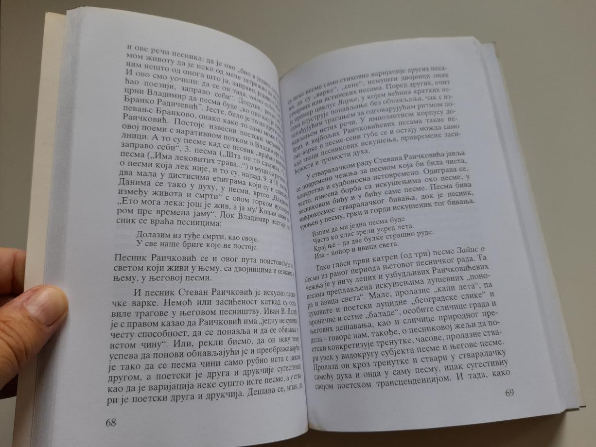 U knjizi je reč o književnim ogledima koje je profesor Slavko Leovac posvetio trojici naših istaknutih pesnika: Vasku Popi, Miodragu Pavloviću i Stevanu Raičkoviću. U Popinim pesmama, često je na delu sudbonosna igra privida i suština, ali tako da između njih nema granice, sukobljavaju se i uranjaju jedni u druge, menjaju svoja obličja. Zbog toga i mi, čitaoci, u raznim smo iskušenjima, zapisao je Leovac o našem čuvenom pesniku Vasku Popi. Stevana Raičkovića pak, autor vidi kao velikog posmatrača i kontemplativnog pesnika prividno ili stvarno malih stvari, svuda u njemu i neposredno oko njega, kao i pesnika istinski velike lirske poezije, dok Miodraga Pavlovića naziva tragaocem ne samo radi traganja nego i radi iskušavanja raznih mogućnosti poetskog rada i stvaranja.