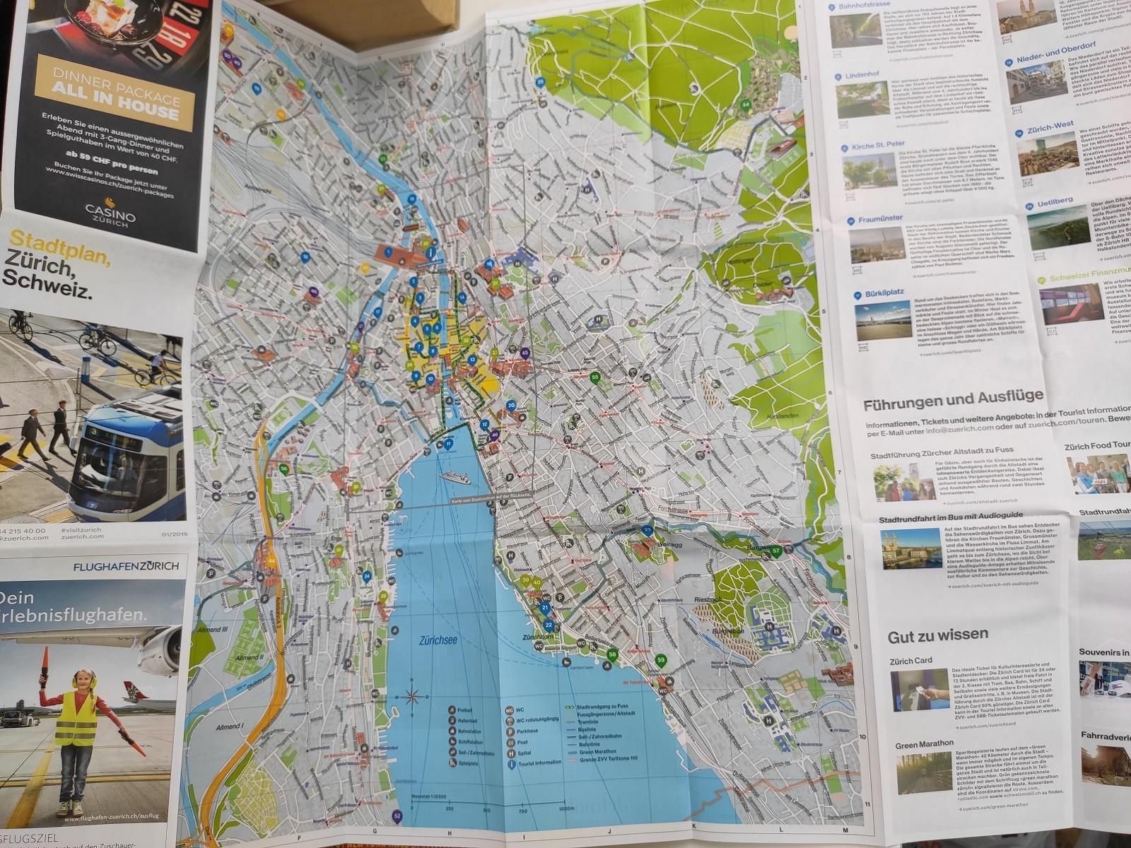 Turistički vodiči za Cirih Švajcarska sa mapom grada