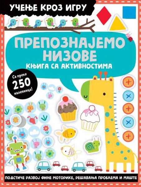 Najpre prepoznajte i dovršite različite nizove, a potom uživajte u igri i brojnim aktivnostima sa novim drugarima. Od jednoroga i dinosaura, preko domaćih životinja, ajkula pa sve do vanzemaljaca, u ovoj zabavnoj knjizi krije se za svakoga ponešto. Takođe, modeli na istiskanje i preko 250 nalepnica obezbediće sate i sate zabave.