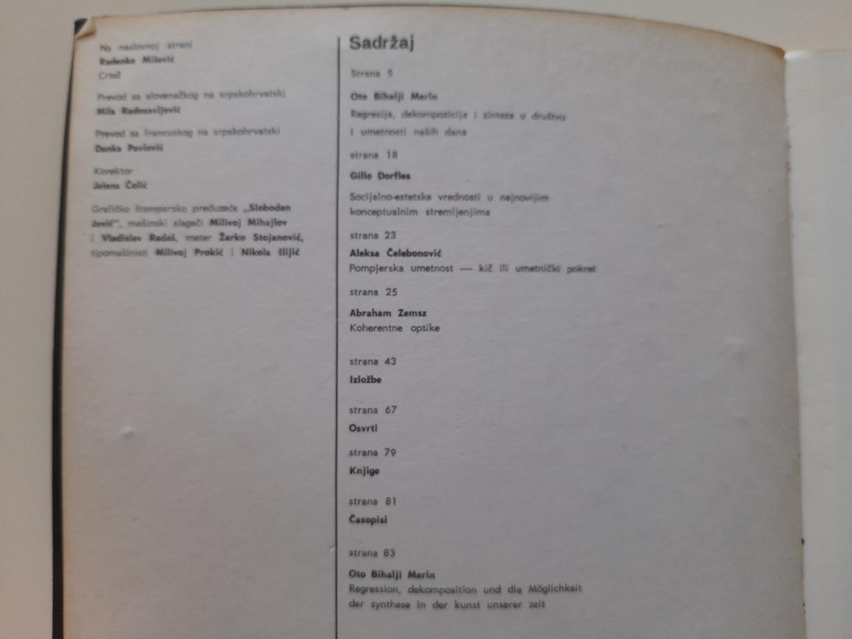 Oto Bihalji Merin, Đilo Dorfles, Aleksa Čelebonović, Abraham Zemaz...