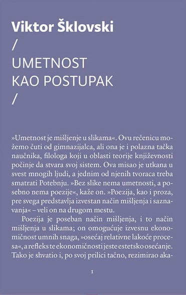 Cilj umetnosti jeste da se omogući doživljaj stvari kao viđenje, a ne kao prepoznavanje; metod umetnosti je metod „oneobičavanja“ stvari i metod otežane forme koja povećava teškoću i dužinu opažanja.