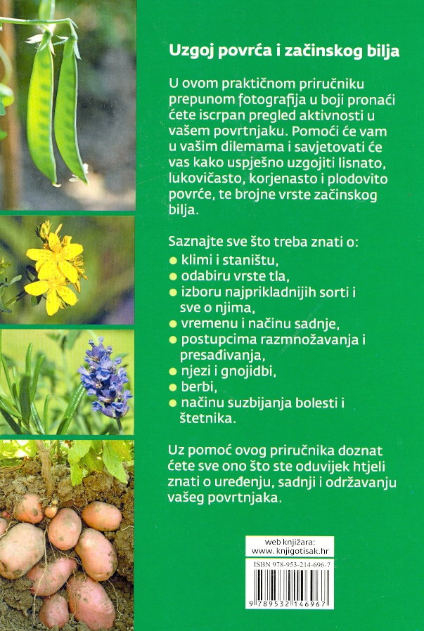U ovom praktičnom priručniku prepunom fotografija u boji pronaći ćete iscrpan pregled aktivnosti u vašem povrtnjaku. Pomoći će vam u vašim dilemama i savjetovati će vas kako uspješno uzgojiti lisnato, lukovičasto, korjenasto i plodovito povrce, te brojne vrste začinskog bilja.