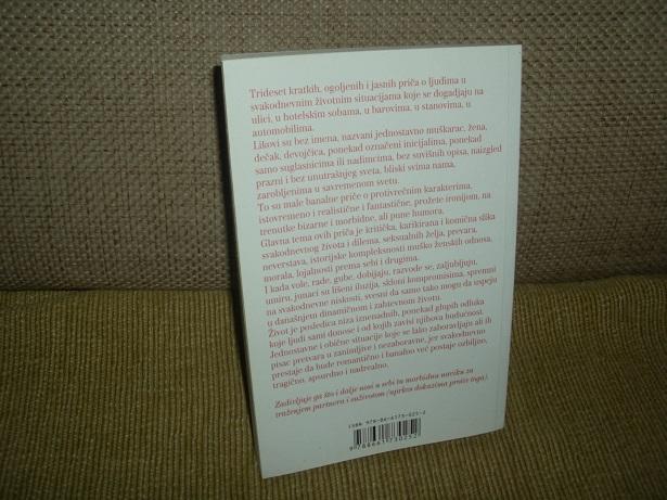 Trideset kratkih, ogoljenih i jasnih priča o ljudima u svakodnevnim životnim situacijama koje se dogadjaju na ulici, u hotelskim sobama, u barovima, u stanovima, u automobilima.