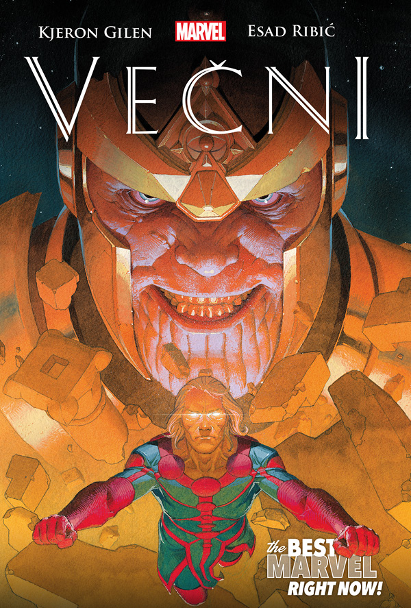 Večni su nastali u mašti Džeka Kirbija 1976. godine kao jedno od njegovih najupečatljivijih ostvarenja. Kjeron Gilen i Esad Ribić sada predstavljaju modernu epohu čuvene porodice Marvelovih besmrtnika, podjednako fascinantnu decenijskim ljubiteljima ovog stripskog mita, koliko i onima koji se sa njim nisu ranije susretali.