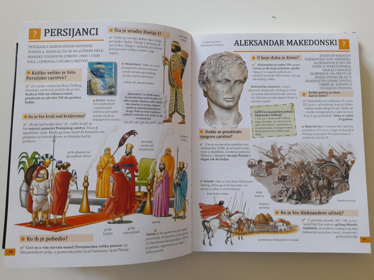 Lako čitljivi i iscrpni tekstovi razjasniće mnoge nedoumice o vasioni, istoriji, ljudskom telu i životinjama. Sve najvažnije oblasti života obrađene su u ovoj knjizi koja će zadovoljiti znatiželju najmlađih čitalaca. Zahvaljujući ovoj knjizi razjanićete mnoge dileme i razrešiti mnoge male, svakodnevne misterije. Saznaćete nešto novo iz raznih oblasti - istorije, nauke, životinjskog carstva, ljudskog tela i mnogih drugih. Pročitaćete odgovore na pitanja koja smo mi za vas pripremili. Verujemo da ćemo uspeti da zadovoljimo vašu znatiželju.