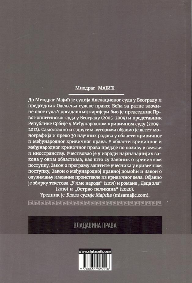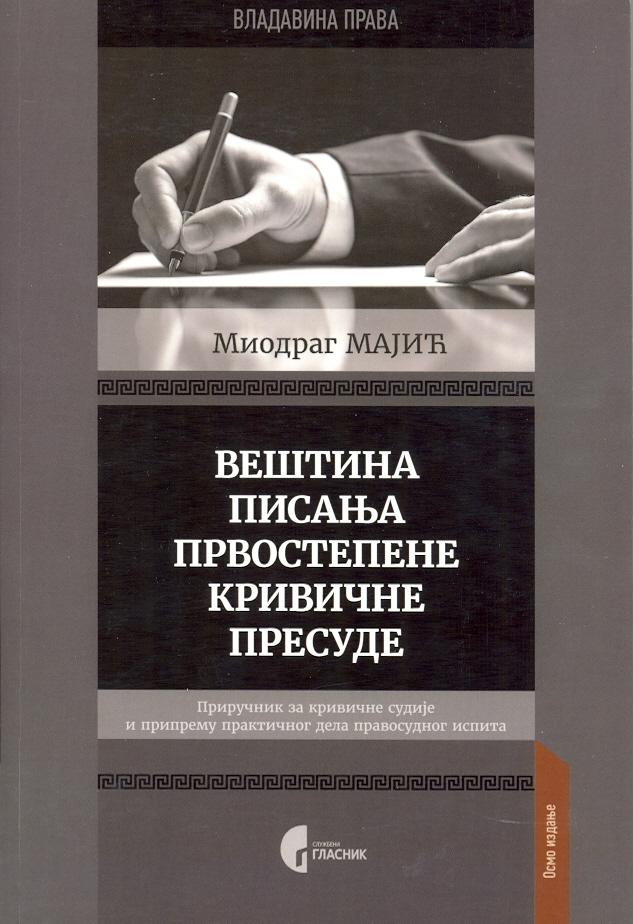 "Naslov rukopisa Veština pisanja prvostepene krivične presude - Priručnik za krivične sudije i pripremu praktičnog dela pravosudnog ispita autora dr Miodraga Majića, sudije Apelacionog suda u Beogradu, ne oslikava u dovoljnoj meri značaj koji ovo štivo ima za našu pravničku javnost.