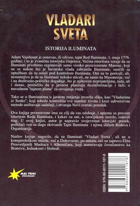 Ova knjiga ima za cilj da vas upozna i edukuje sa pravom istorijom Reda Iluminata i kakav su oni, u istorijskom smislu, ostavili trag.