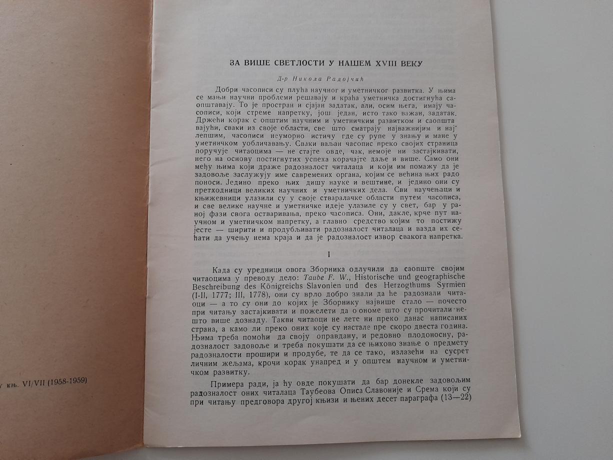 Za više svetlosti u našem XVIII veku