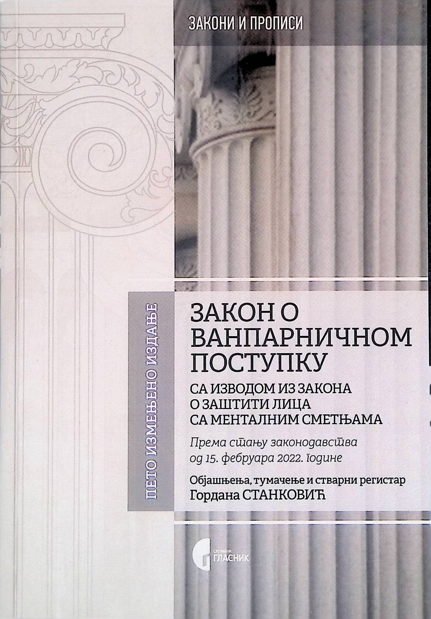 Zakon o vanparničnom postupku priređen je sa objašnjenjima i tumačenjem pojedinih zakonskih rešenja prof. dr Gordane Stanković.