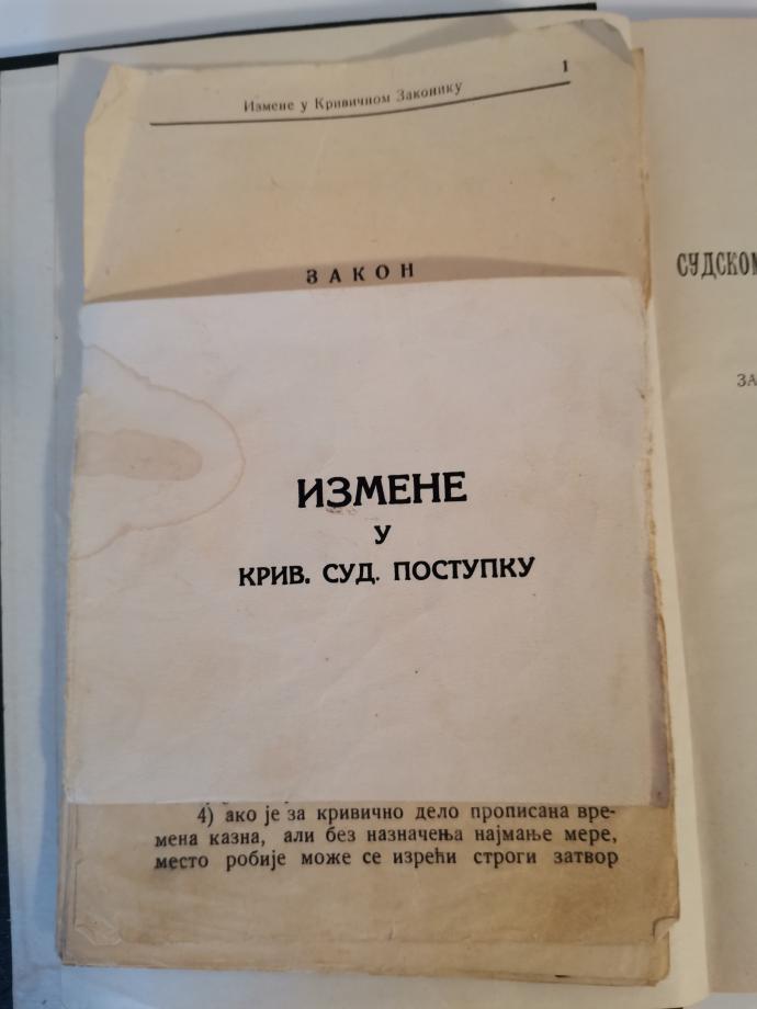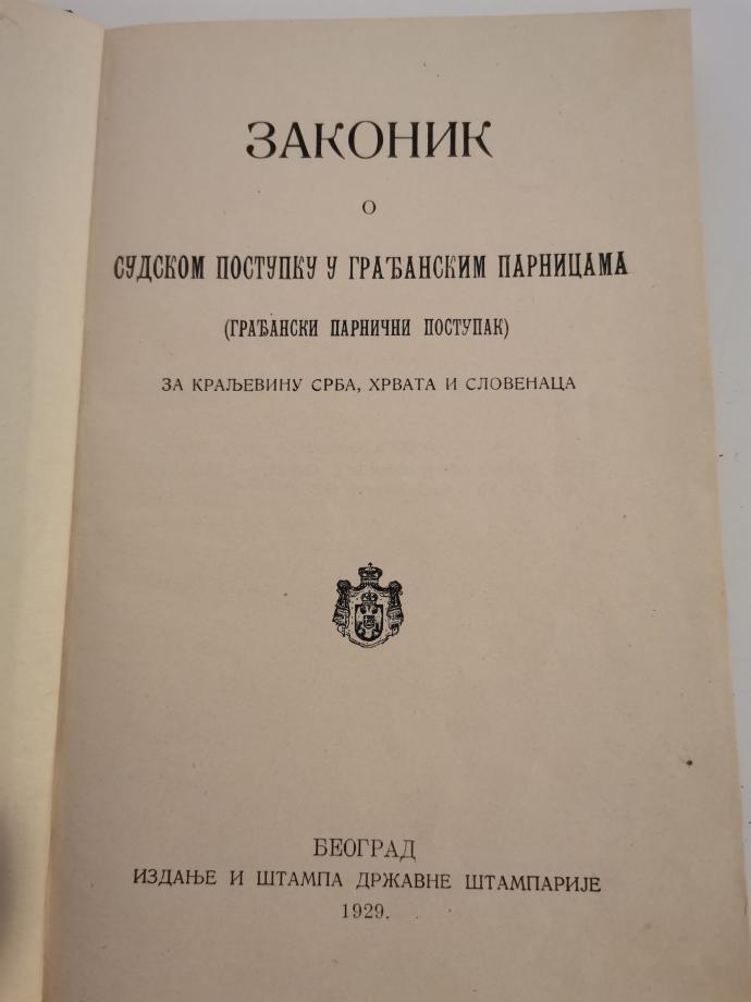 Knjiga je antikvarna iz 1929 godine. Stampala ga drzavna stamparija Beograd. Uz knjigu idu i izmene u krivicnom sudskom postupku od 9 0ktobra 1931 godine.