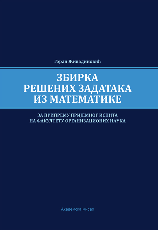 „Zbirka rešenih zadataka iz matematike za pripremu prijemnog ispita na FON“ Gorana Živadinovića predstavlja zbirku zadataka namenjenu kandidatima koji se pripremaju za prijemni ispit iz matematike na Fakultetu organizacionih nauka u Beogradu. Knjiga je koncipirana tako da kroz veliki broj rešenih zadataka omogući sistematsko obnavljanje i utvrđivanje gradiva iz srednjoškolske matematike koje je potrebno za uspešno polaganje prijemnog ispita. Zadaci su pažljivo odabrani i usklađeni sa tipovima zadataka koji se pojavljuju na prijemnim ispitima, što ovu zbirku čini posebno korisnom za realnu pripremu kandidata.
