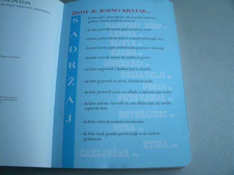 Dženet Strit-Porter, renomirana novinarka oštrog uma i još oštrijeg jezika, iskrenim manifestom punim humora nas vodi na nezaboravno putovanje kroz život savremene žene kojoj je jednostavno dosta svega - obaveza, stresa, dilema, a ponajviše tipičnih životnih saveta.