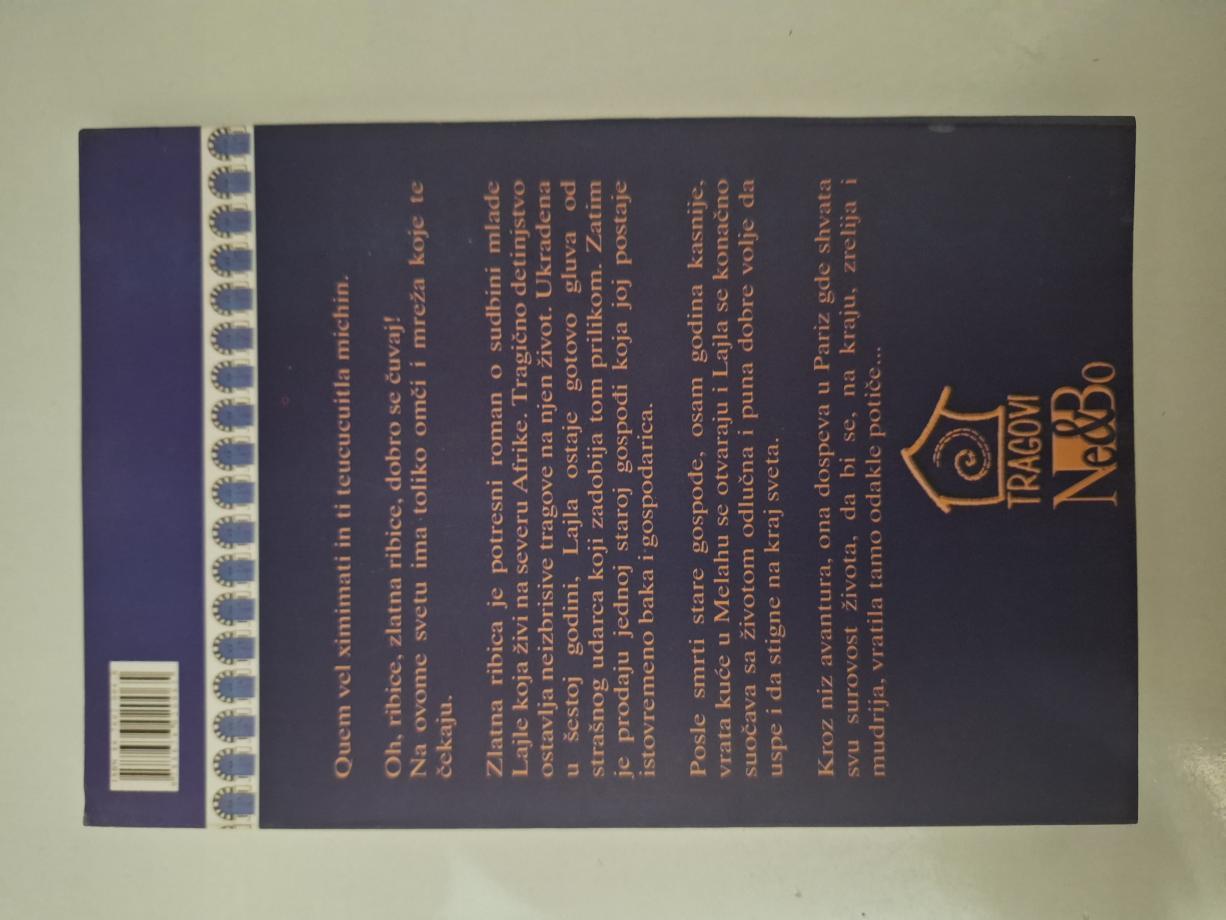 `Zlatna ribica` je potresan roman o sudbini mlade Lajle, koja živi na severu Afrike. Tragično detinjstvo ostavlja neizbrisive tragove na njen život. Ukradena u šestoj godini, Lajla ostaje gotovo gluva od strašnog udarca koji zadobija tom prilikom. Zatim je prodaju jednoj starijoj gospođi koja joj postaje istovremeno baka i gospodarica. Posle smrti stare gospođe, osam godina kasnije, vrata kuće u Melahu se otvaraju i Lajla se konačno suočava sa životom odlučna i puna dobre volje da uspe i da stigne na kraj sveta. Kroz niz avantura, ona dospeva u Pariz gde shvata svu surovost života, da bi se, na kraju, zrelija i mudrija, vratila tamo odakle potiče...
